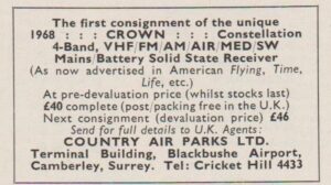 Crown Crown Radio Corporation, Japan Constellation 4 band Constellation 18 Transistor Inside says Model TRF-2200A Flying Magazine Nov 1967 Air Pictorial June 1968 darren@airband-radio.co.uk