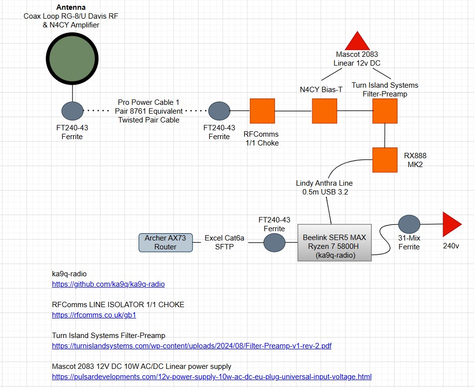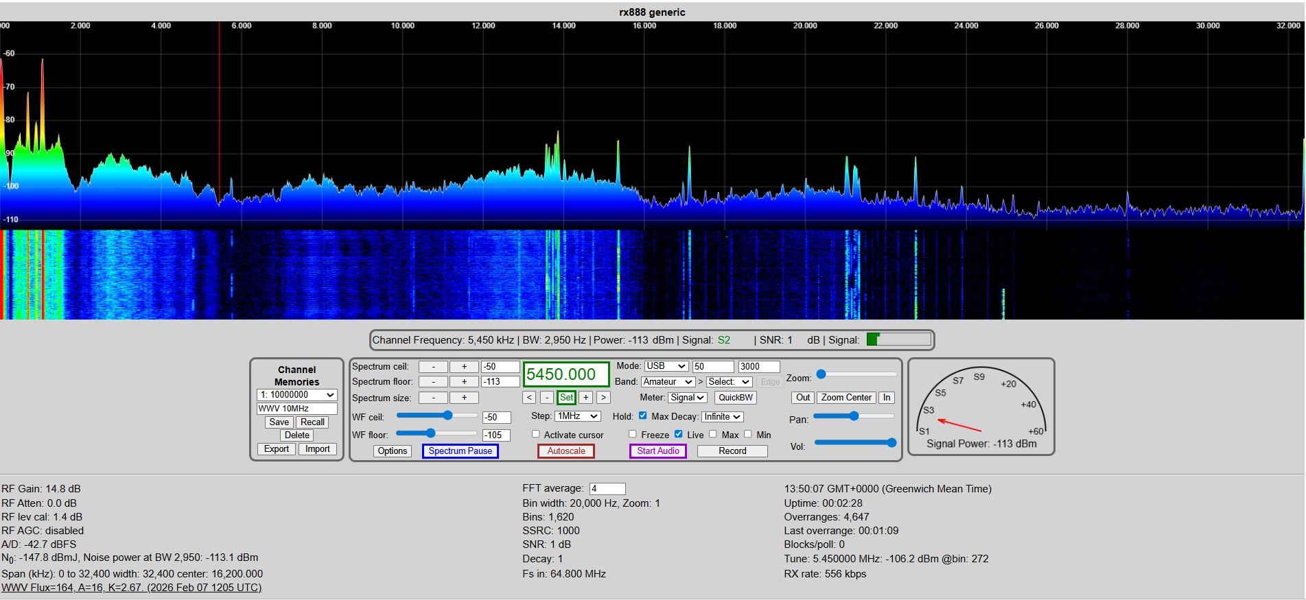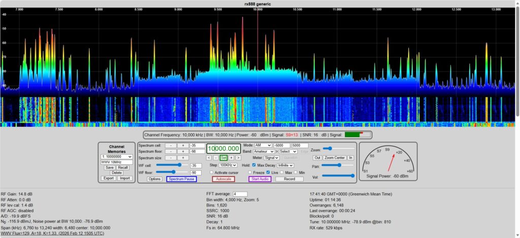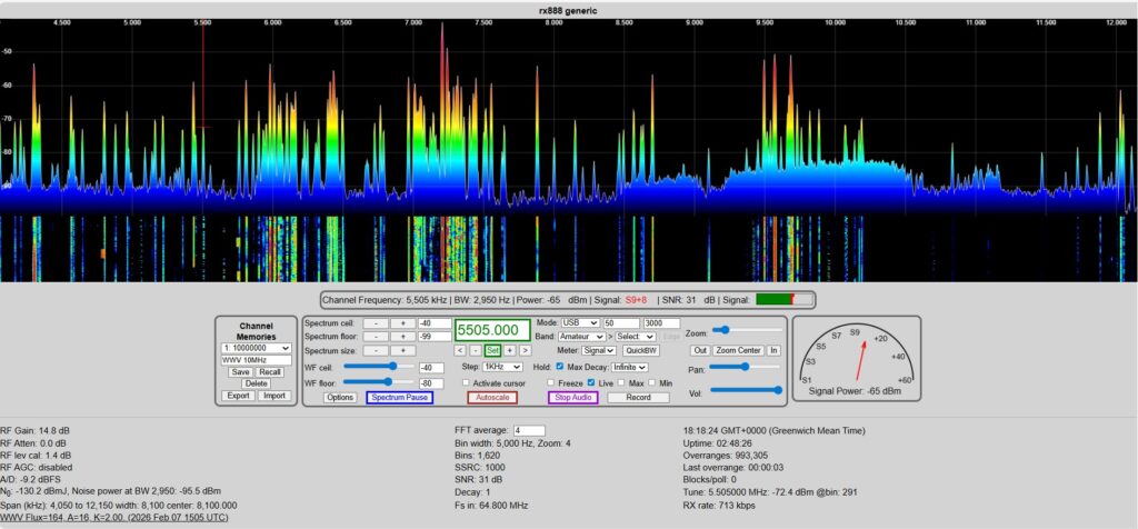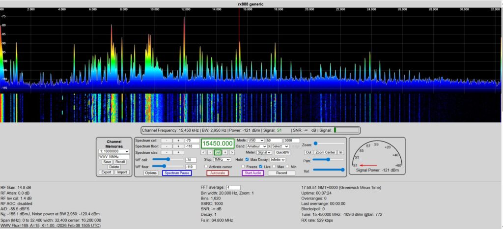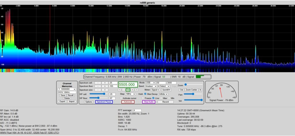 I’ve re-started my experiments with an RX-888 MK2 SDR – this is an excellent receiver due to it’s 32MHz bandwidth, allowing you to monitor the full HF band.
